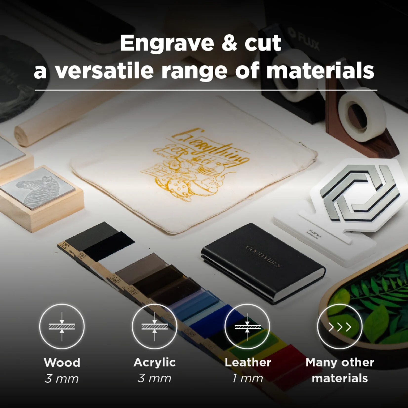 – Zmogljiv laser visoke ločljivosti (Beamojev ultra tanek 30 W laser lahko gravira izjemne podrobnosti do širine 0,05 mm z jasno ločljivostjo 1000 dpi.)