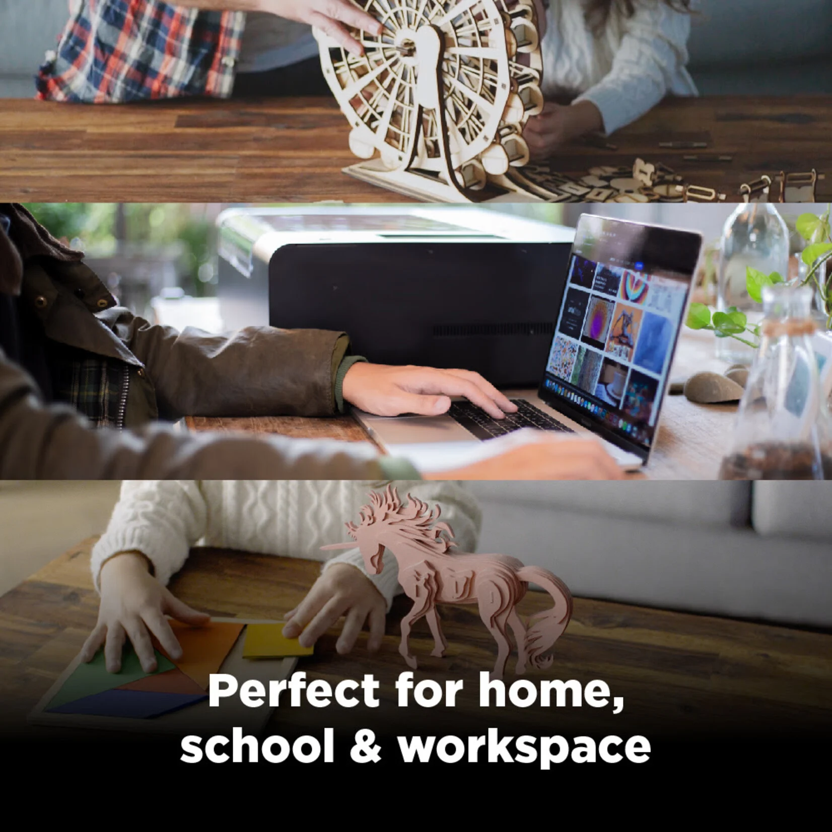 Oživite svoje načrte s 30 W CO₂ laserjem, ki deluje na delovnem območju 30 x 21 cm.